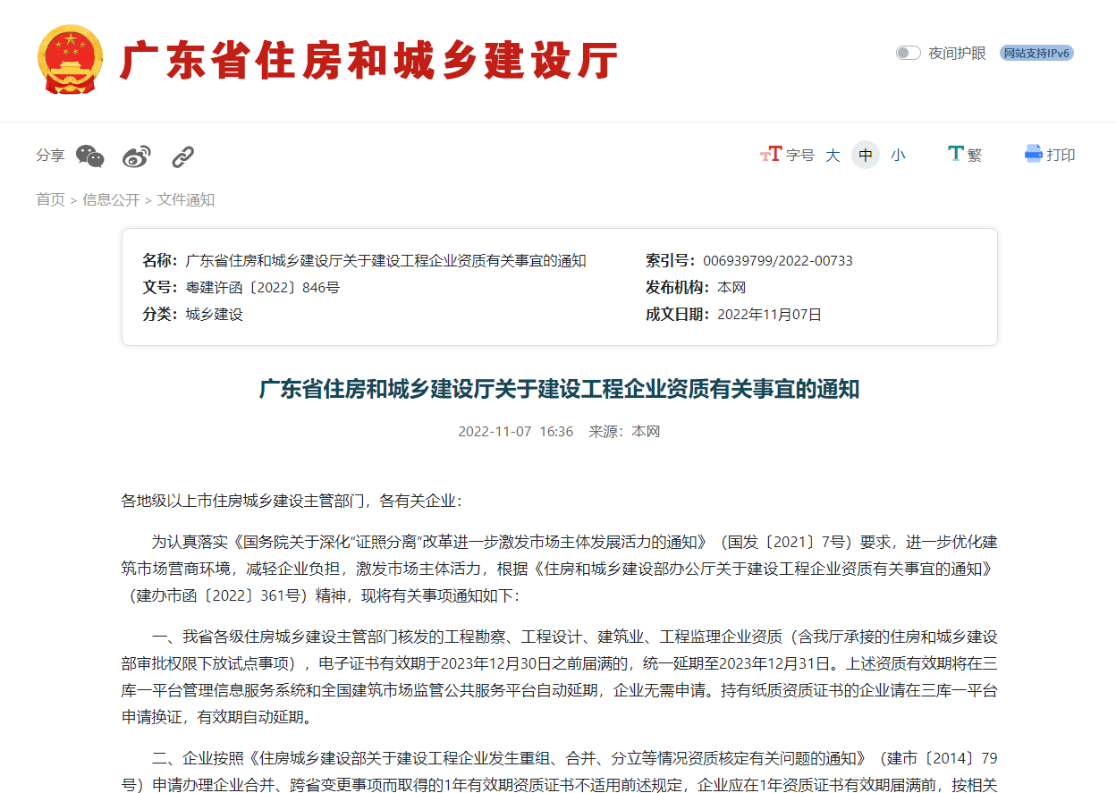 廣東省住房和城鄉建設廳關于建設工程企業資質有關事宜的通知
